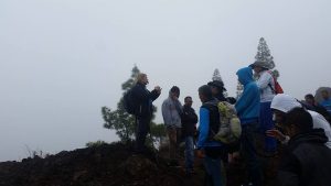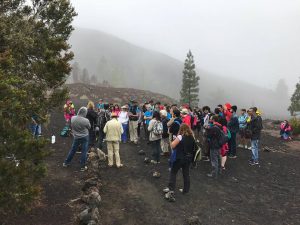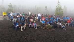 Y comienza VULCANALIA con una ruta guiada por la profesora Carmen Romero. Nos desplazamos a las proximidades de Trevejo con un total de 90 personas, la mayoría alumnos de Formación Profesional de las distintas Familias Profesionales más relacionadas a nuestros contenidos ( Seguridad y Medio Ambiente, Agraria, Turismo, Educación Inf., Energía y Agua,…) Aunque por supuesto, en Vulcanalia cualquier alumno con ganas de aprender sobre nuestra Tierra volcánica siempre será bienvenido, sea la rama de la que venga. Pero en este caso agradecemos el compromiso final de los Institutos Garoé del Hierro, El Sobradillo, Los Silos, Los Gladiolos, Garachico, La Candelaria.