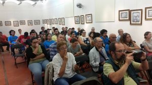A partir de las 5 de la tarde, alrededor del medio centenar de personas se reunían en el Centro de Formación municipal, para participar en las ponencias sobre elmar de nubes y las mujeres en los oficios del agua, impartidas por Mª Victoria Marzol (licenciada en Geografía Física de la ULL) y Miguel Ángel Gómez (licenciado en Geografía e Historia de la ULL) respectivamente