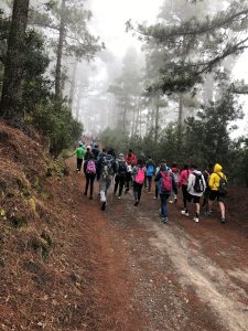 Y comienza VULCANALIA con una ruta guiada por la profesora Carmen Romero. Nos desplazamos a las proximidades de Trevejo con un total de 90 personas, la mayoría alumnos de Formación Profesional de las distintas Familias Profesionales más relacionadas a nuestros contenidos ( Seguridad y Medio Ambiente, Agraria, Turismo, Educación Inf., Energía y Agua,…) Aunque por supuesto, en Vulcanalia cualquier alumno con ganas de aprender sobre nuestra Tierra volcánica siempre será bienvenido, sea la rama de la que venga. Pero en este caso agradecemos el compromiso final de los Institutos Garoé del Hierro, El Sobradillo, Los Silos, Los Gladiolos, Garachico, La Candelaria.
